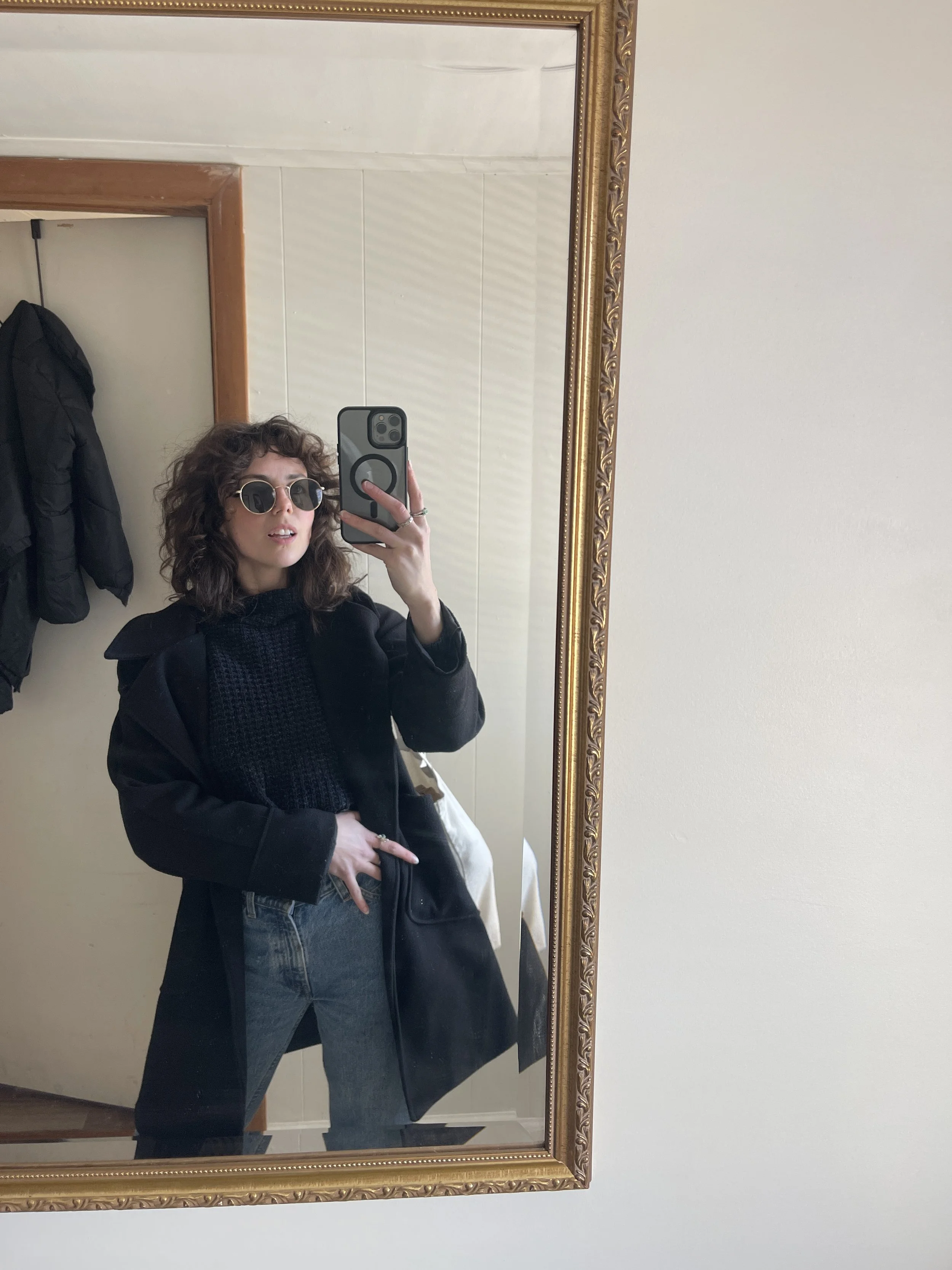 Me, today, feeling literary in layers. No, my turtleneck is not choking me (this is an affirmation).