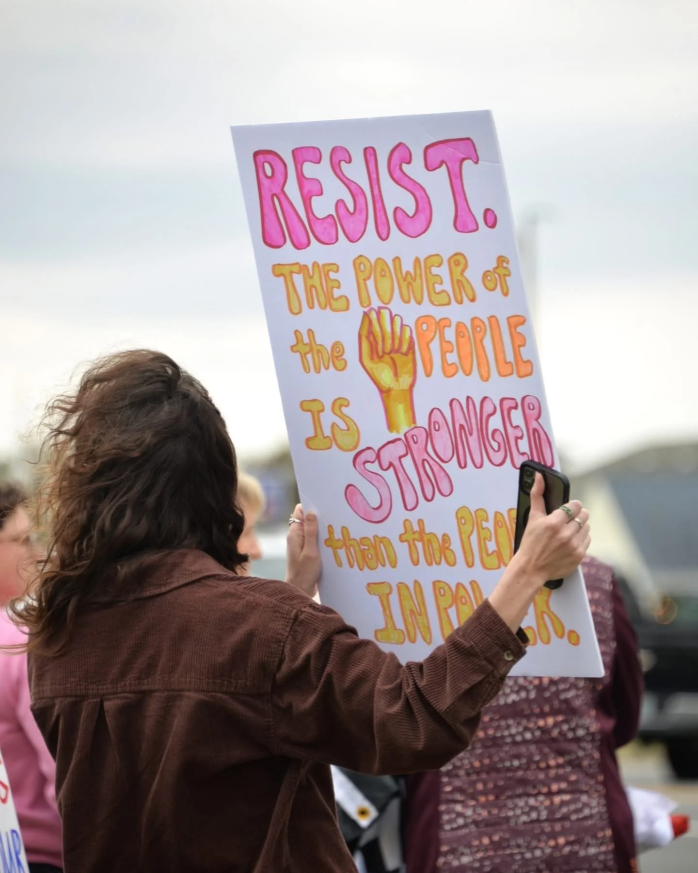A photo of the author taken by fellow protestor and organizer Cyndi Goetcheus Sarfan.