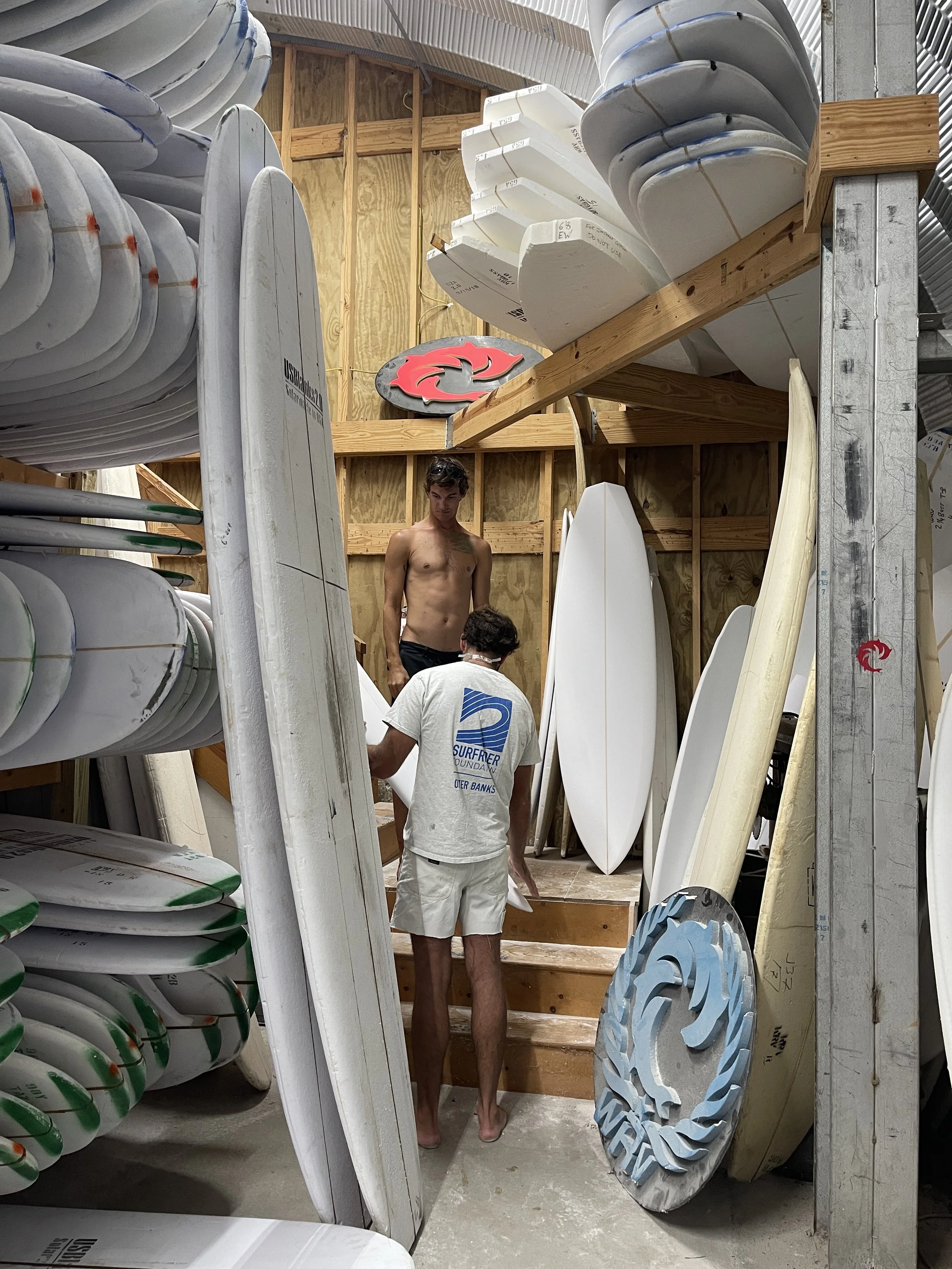 Leo: “Hell it’s a long crazy story but I grew up in Hazleton, Pennsylvania. Um, a Coal region. We have a funny silly dialect everybody thinks I’m from Canada but actually the dialect is called ‘coal cracker’. I moved down here probably about 7 years ago uh yeah I just kinda couldn’t get a job after college and I always wanted to build boards so it just kind of happened that way. I never knew there was such a thriving industry, or once upon a time a thriving industry on the Outer Banks even though it was once the gem of the east coast, but now with better wetsuit technology like in Maine there's a lot more structure and so everybody kind of moved North with better surfing… but we still have great waves and its still a mecca in some kind of weird way.”